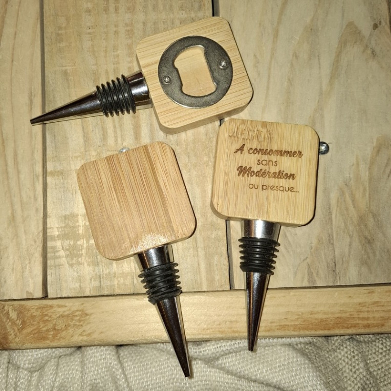 Bouchon ouvre bouteille en Bambou et gravé