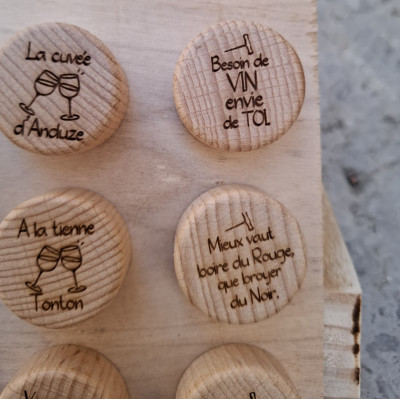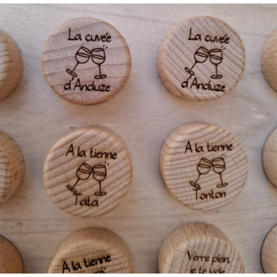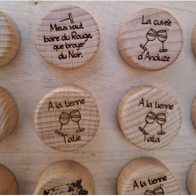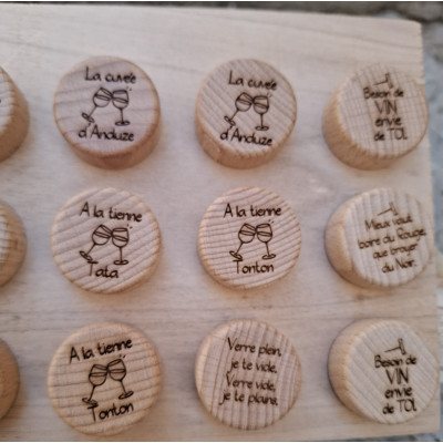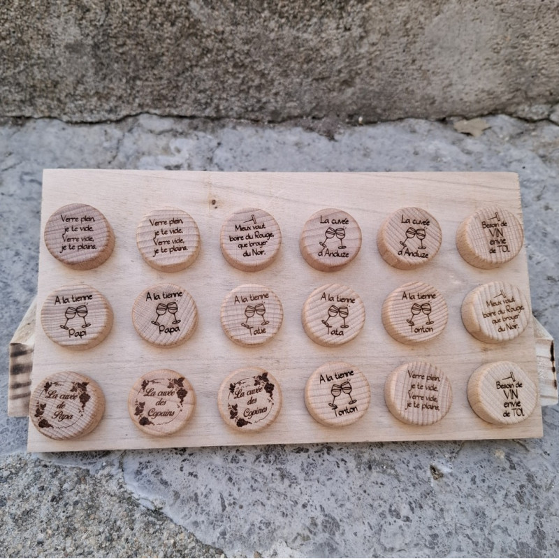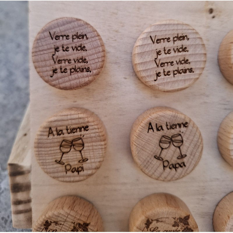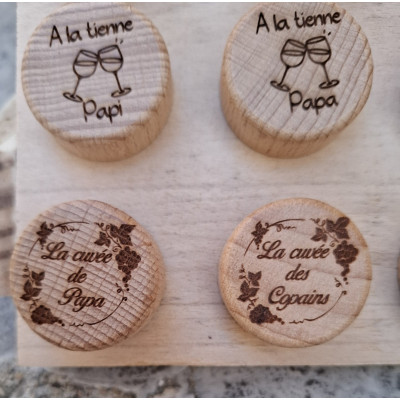 12Lot thème vin, limonadier, tire bouchon, bouchon et sous verre personnalisé " La cuvée de Papi ou Papa ou autre"
