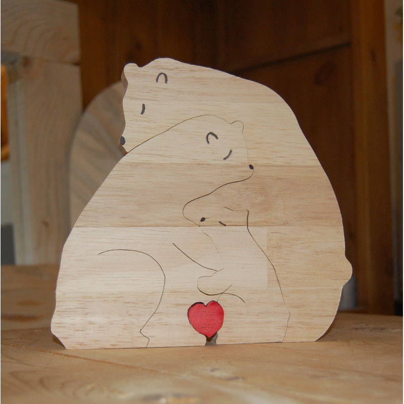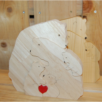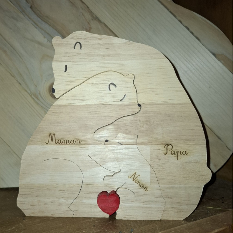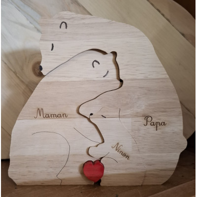 Famille puzzle Ours , papa, maman et prénom gravé des enfants