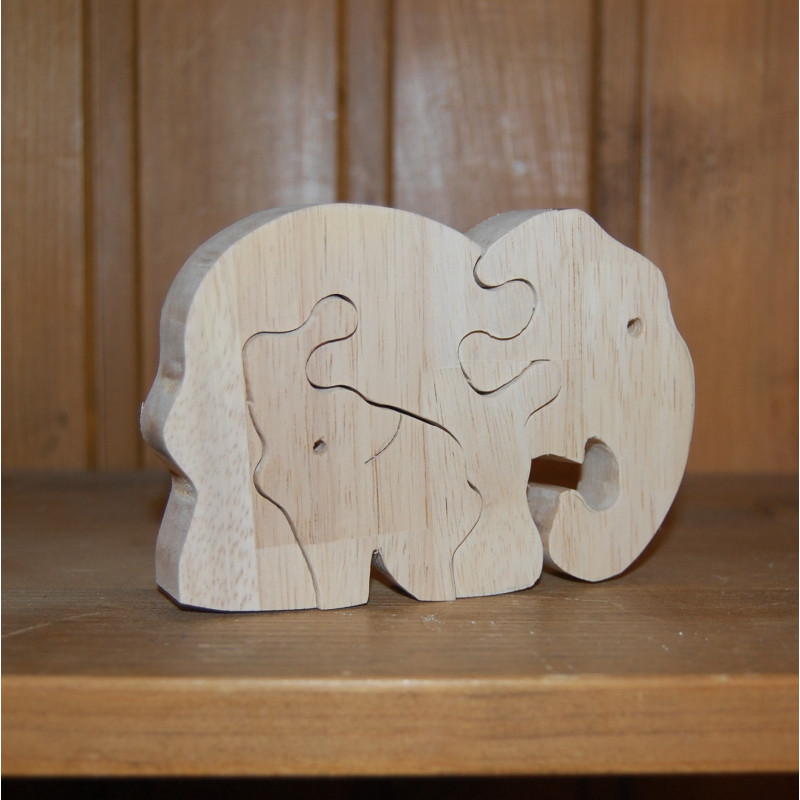 Famille puzzle éléphant , papa, maman et prénom gravé des enfants