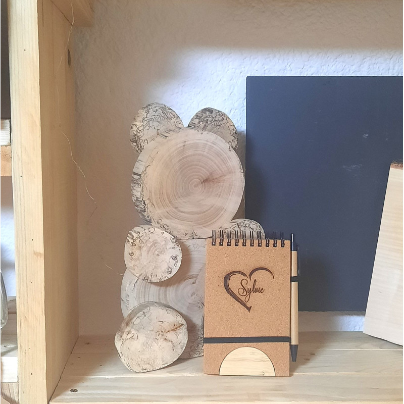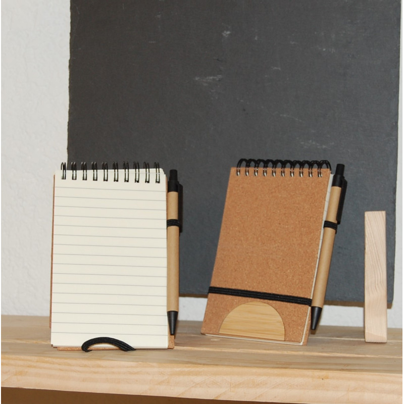 Cahier A5 en liège , pages recyclées, avec lignes et stylo