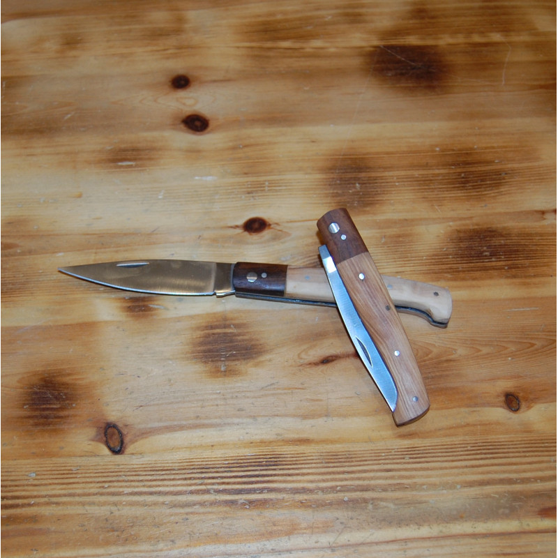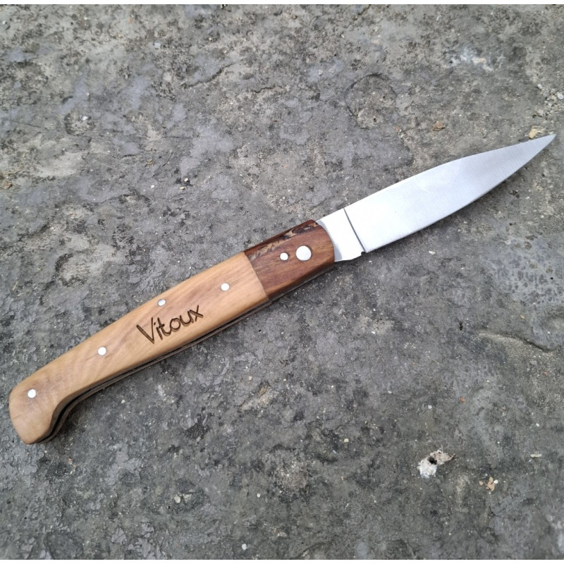 Couteau de qualité ,en bois d' Olivier lame gravée