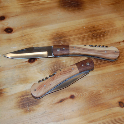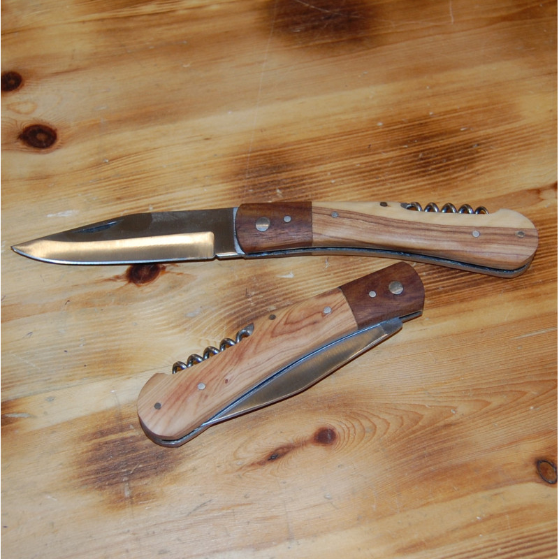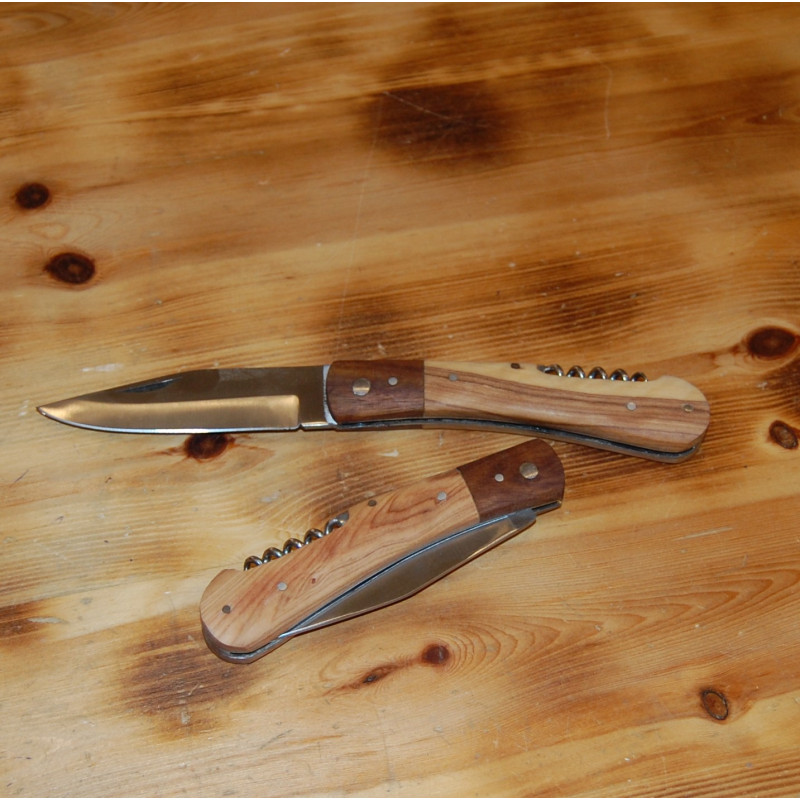 Couteau de qualité ,en bois d' Olivier lame gravée