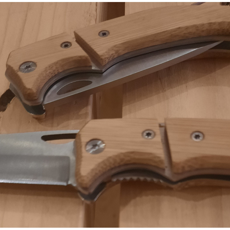 3Couteau inox, et bois ,cran d'arrêt , gravé prénom