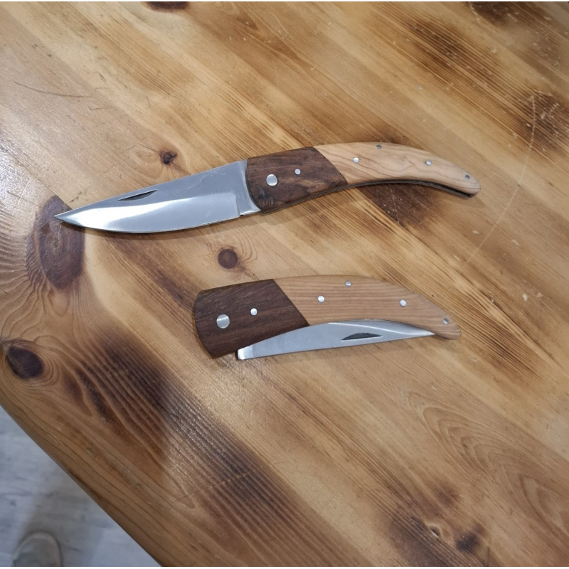 Couteau de qualité ,en bois d' Olivier lame gravée