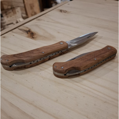 Couteau de qualité ,en bois d' Olivier lame gravée