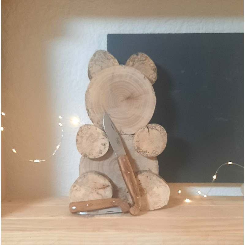 9Couteau de qualité ,en bois d' Olivier lame gravée CERF