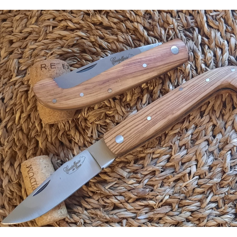 Couteau de qualité ,en bois d' Olivier lame gravée
