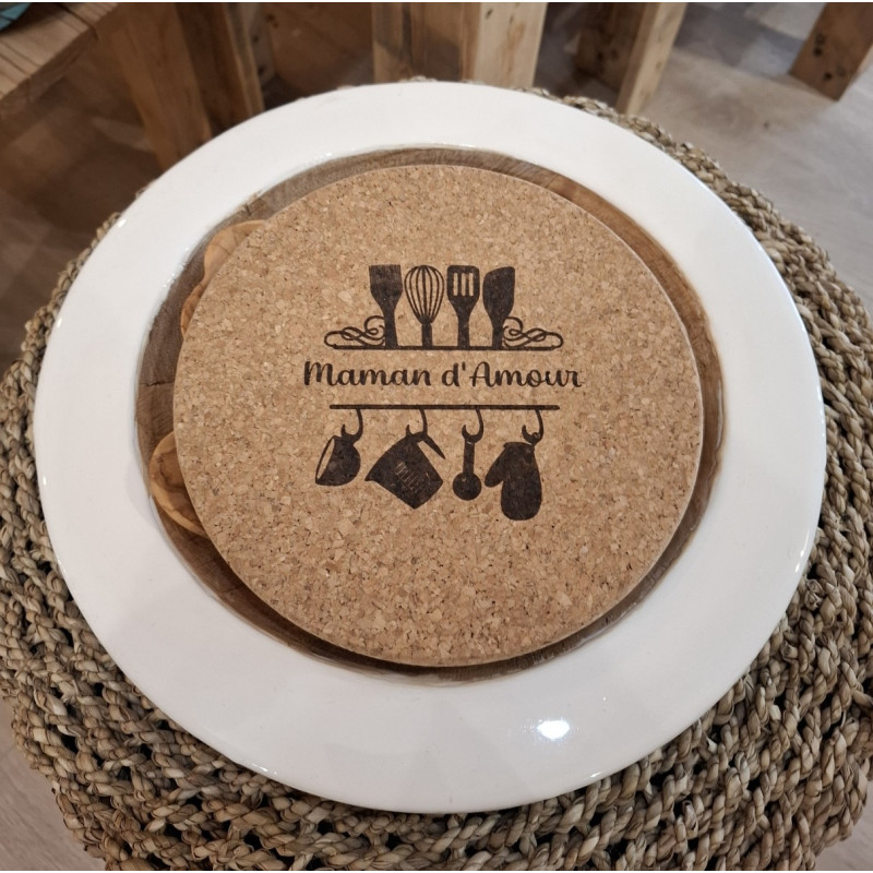 Dessous de plat en liège gravé cuisine et Maman d'amour"
