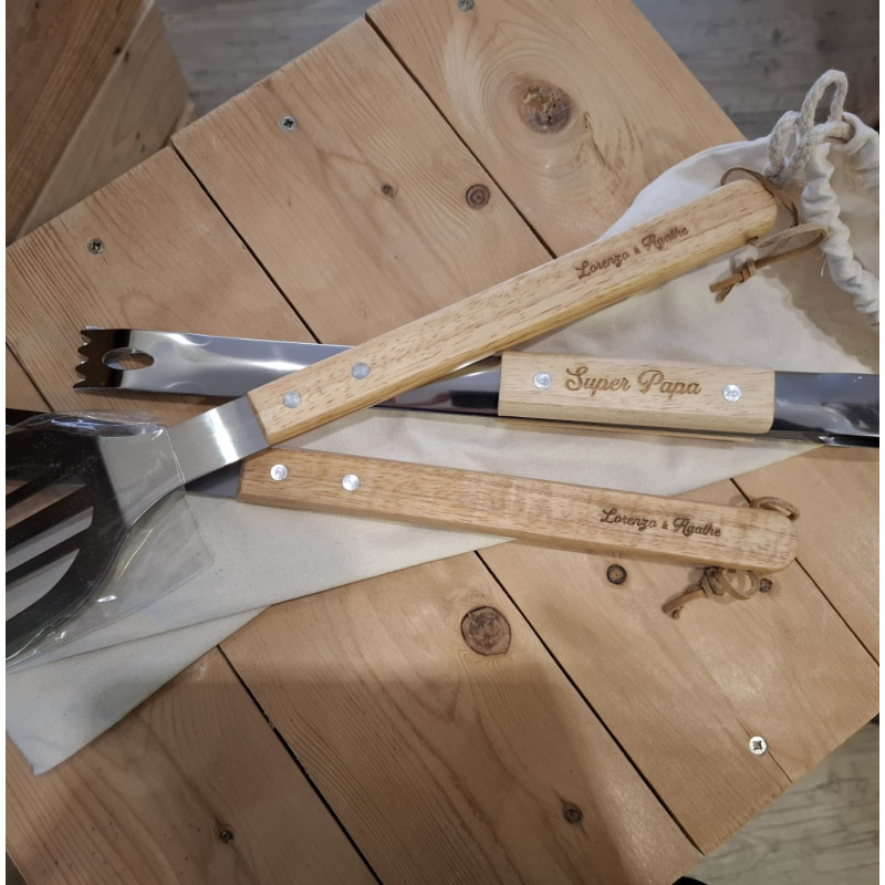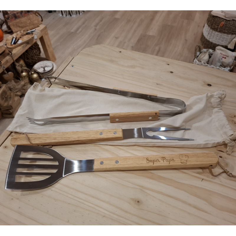 Ensemble BBQ Ensemble de barbecue. , couverts gravés "Super Papa " ...