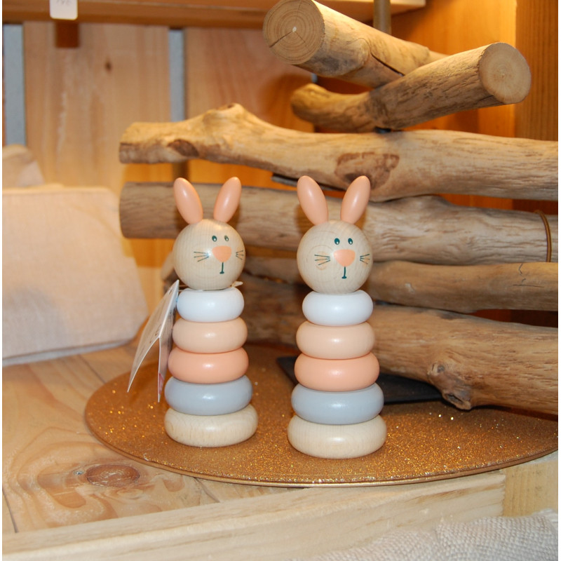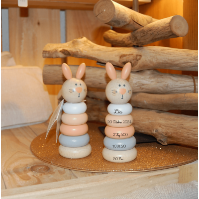 Jeu à empiler , en bois gravure pour naissance bébé aux couleurs pastels