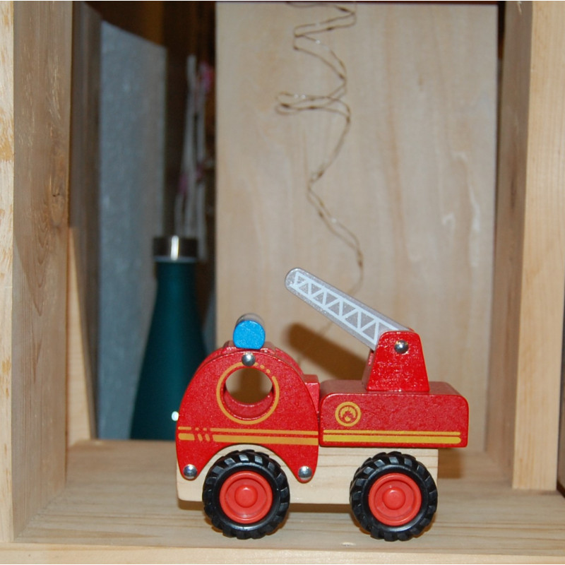 Camion de pompier en bois avec des pneus recouverts de caoutchouc et silencieux facile à saisir grâce aux ouvertures des fenêtres