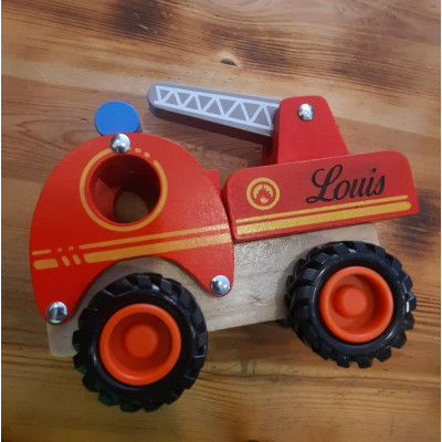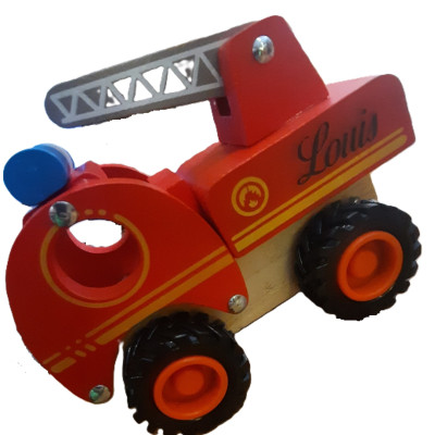 3Camion de pompier en bois , gravé prénom