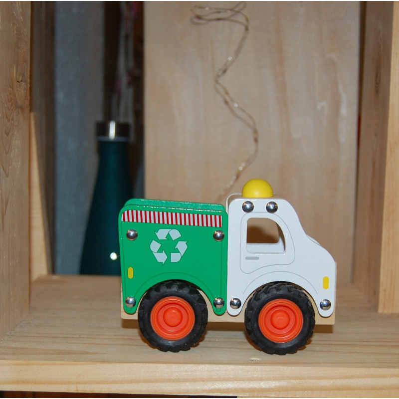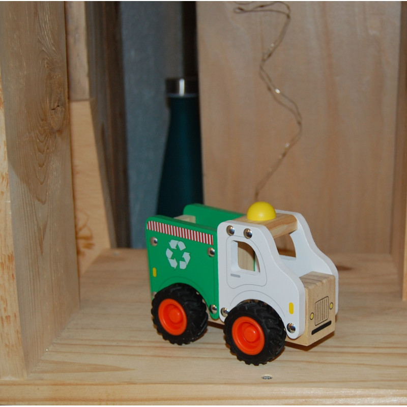 Véhicule de recyclage en bois , gravé prénom