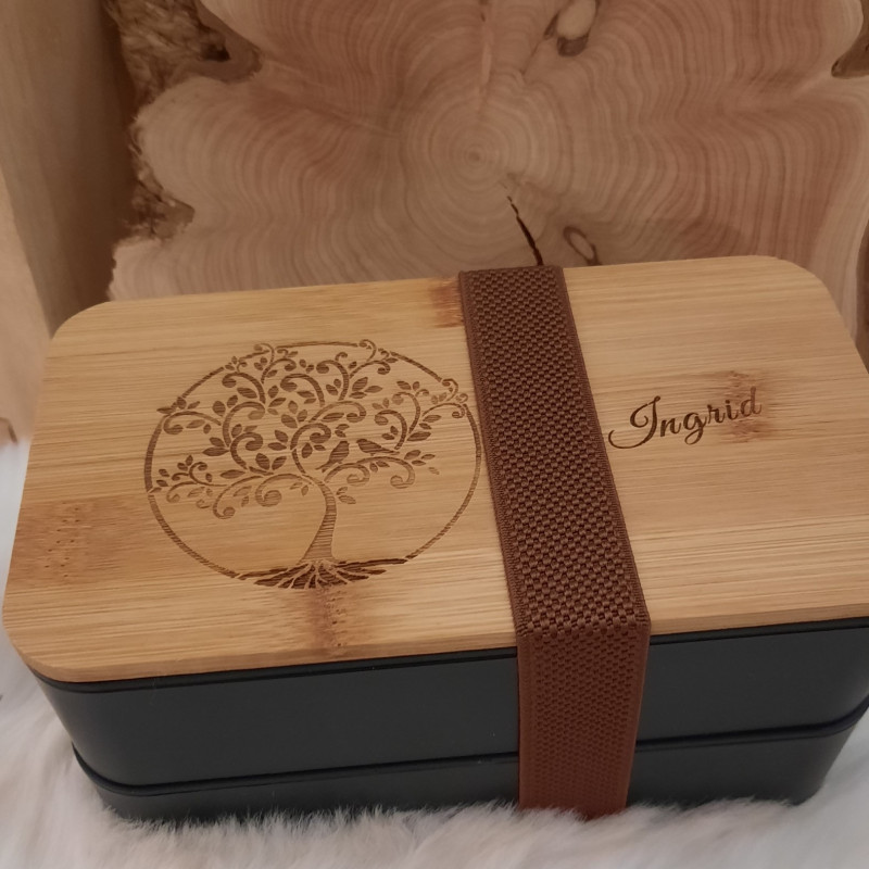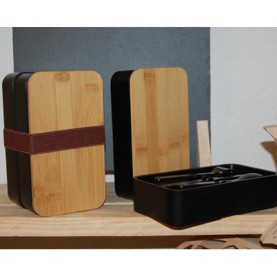 2 Compartiments 700 ml avec couvercles chacun + couvercle en bambou