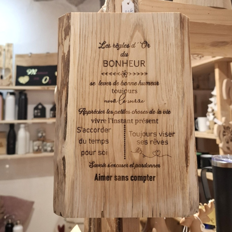Très jolie cadeau a offrir, adaptée pour votre décoration intérieur, Message gravé dans une planche de Châtaignier