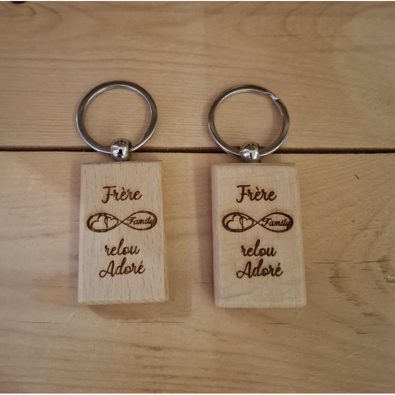 Porte clé en bois, "Frère relou adoré" , au verso possible d'y ajouter un prénom