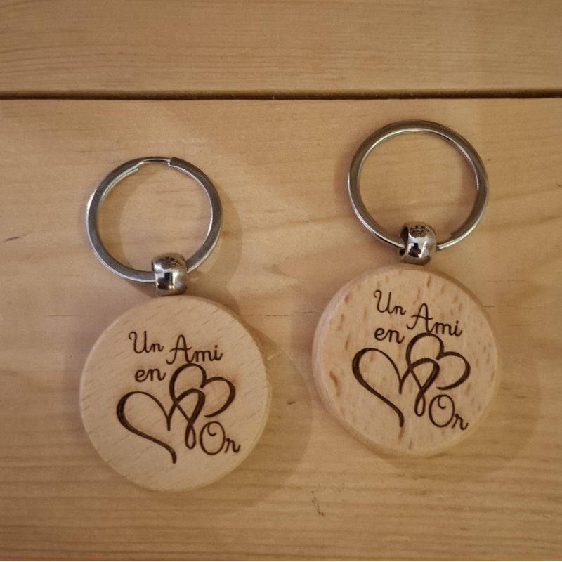 Porte clé en bois, "Un ami en Or" , au verso possible d'y ajouter un prénom