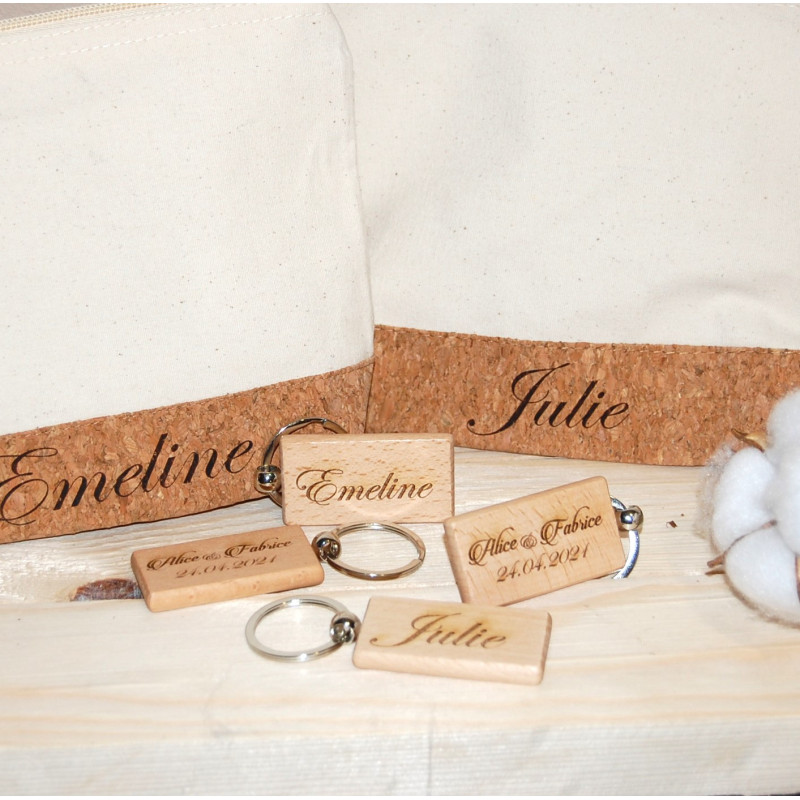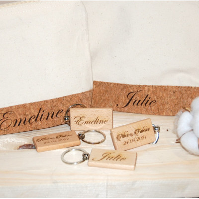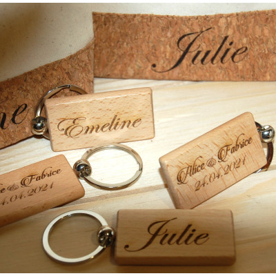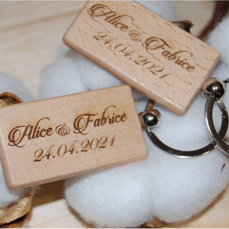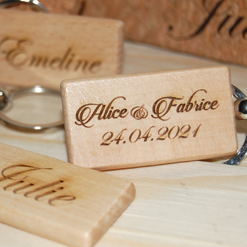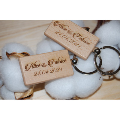 Porte clé en bois, "spécial évènements, un face avec date et 2 prénom , au verso possible d'y ajouter un prénom