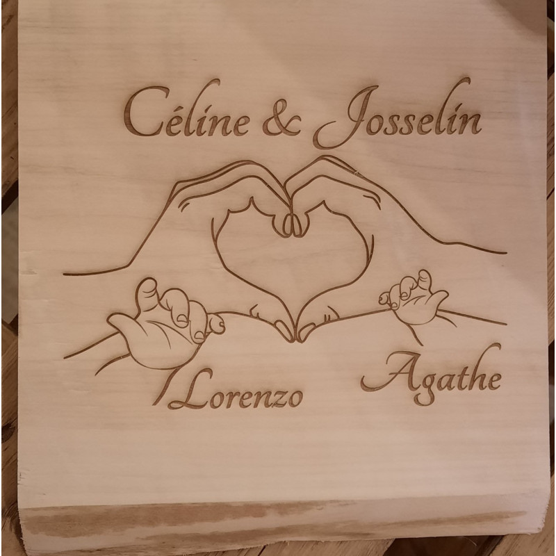 Gravure Mains famille planche avec prénoms gravés sous chaque mains