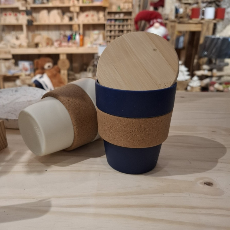 Verre de la ligne Nature d’une capacité de 350 ml. Fabriqué en PP veiné, avec bande extérieure en liège naturel et couvercle en bambou. Avec la certification Food Grade, garantissant la sécurité lorsque les aliments entrent en contact avec le matériau utilisé pour fabriquer le produit.